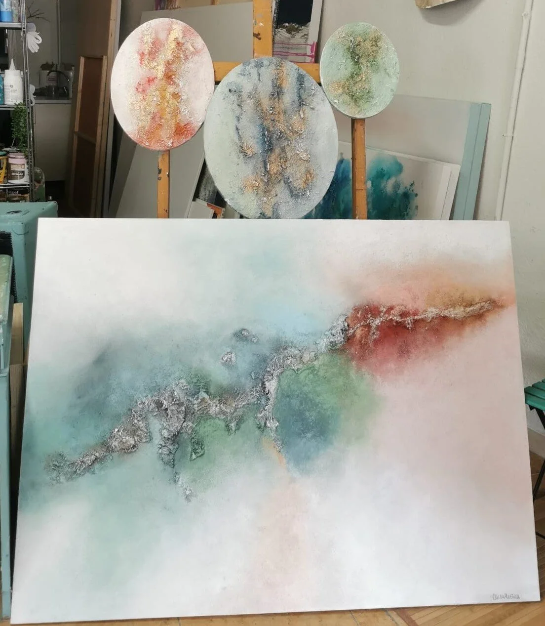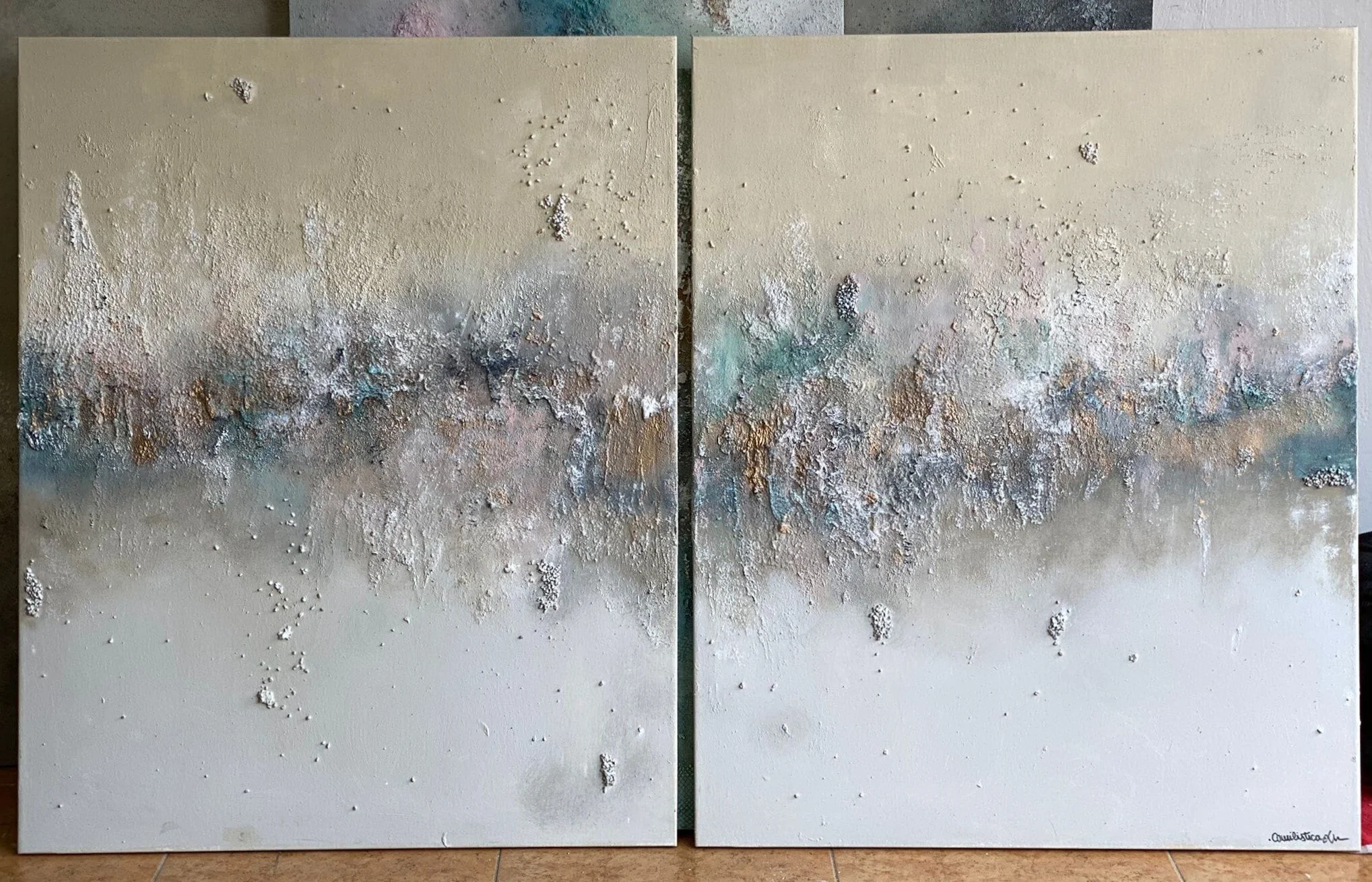 Mi interpretación abstracta del renacer, florecer y de la transformación. Me estimula pensar que estás obras pueden renovar la energía de cualquier espacio a través de los colores y de la emoción con las que las creo.